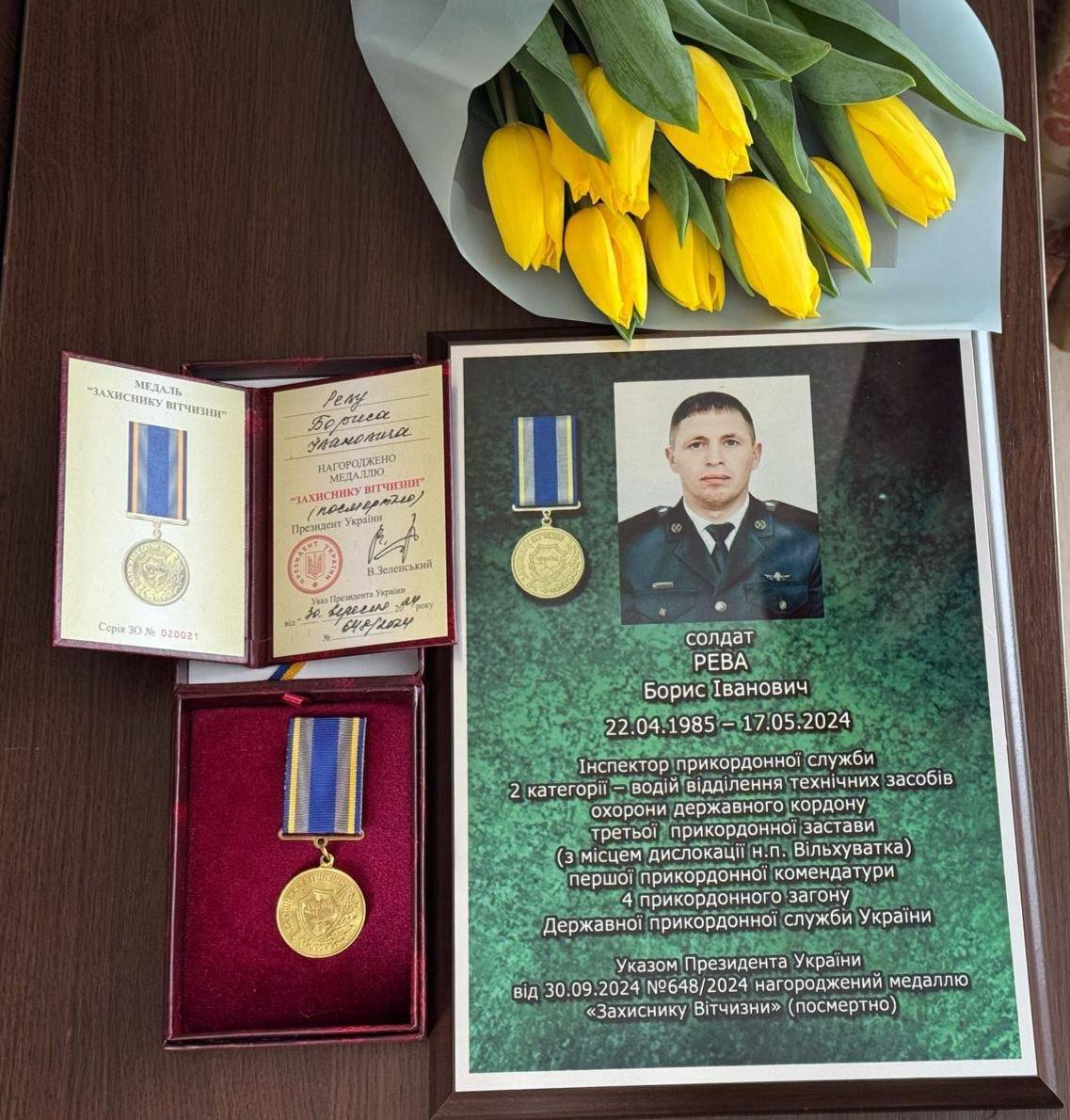 11 березня 2025 року, в приміщенні Дубовиківської сільської ради, за участю сільського голови Миколи КАРНАУХА, заступника начальника восьмого прикордонного загону з морально-психологічного забезпечення, полковника Олега ОПОЛОНСЬКОГО, старости Чаплинського старостинського округу Олени МАНЬКО, відбулася урочиста церемонія вручення державної нагороди – медалі «Захиснику Вітчизни», якою, за мужність, виявлену в захисті державного суверенітету та територіальної цілісності України та самовіддане служіння українському народові, Указом Президента від 30 вересня 2024 року № 648, було нагороджено солдата РЕВУ Бориса Івановича (посмертно). Вірний Присязі Борис Іванович загинув 17 травня 2024 року, під час виконання бойового завдання на території Харківської області.